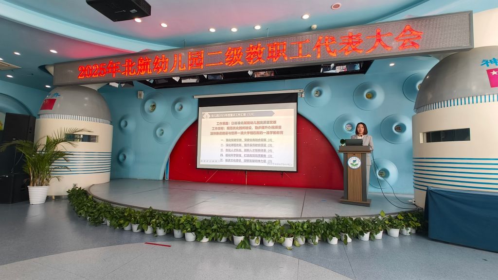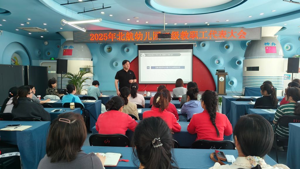 4月17日,北航幼儿园2025年度春季学期二级教职工代表会议在幼儿园多功能厅召开。会议全面解读了2024年园所工作情况,系统部署了2025年园所重点工作,落实教职工提请议案。北航实验学校党委书记马树微、幼儿园园长刁旭、以及北航实验学校工会委员会委员、幼儿园教代会代表和园行政办公会成员共同参会。会议由实验学校工会副主席、幼儿园工会主席任胜男主持。