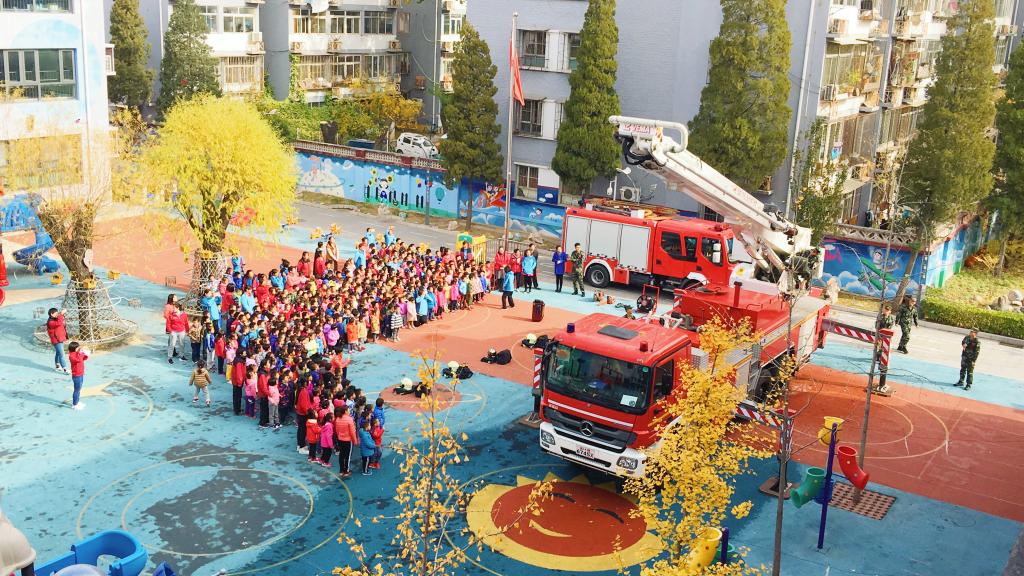 活动当天,大喇叭突然传出全园紧急广播:“幼儿园现在发现火情,请全园教职工迅速组织幼儿进行安全疏散。”