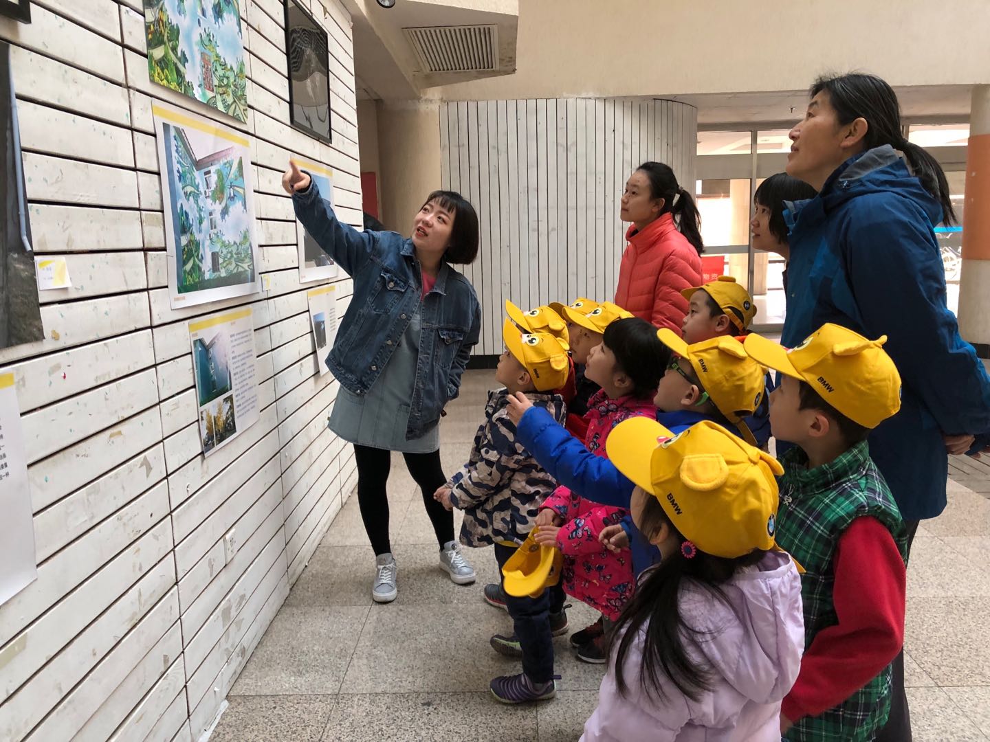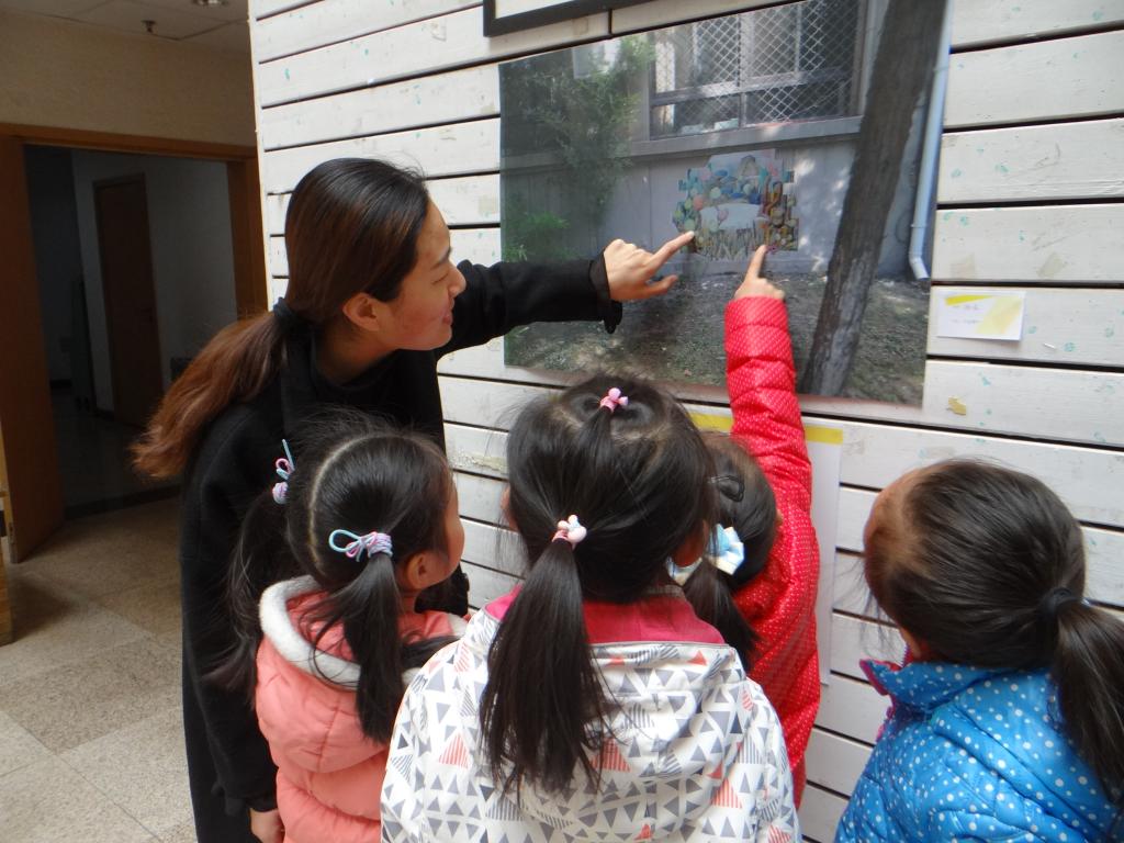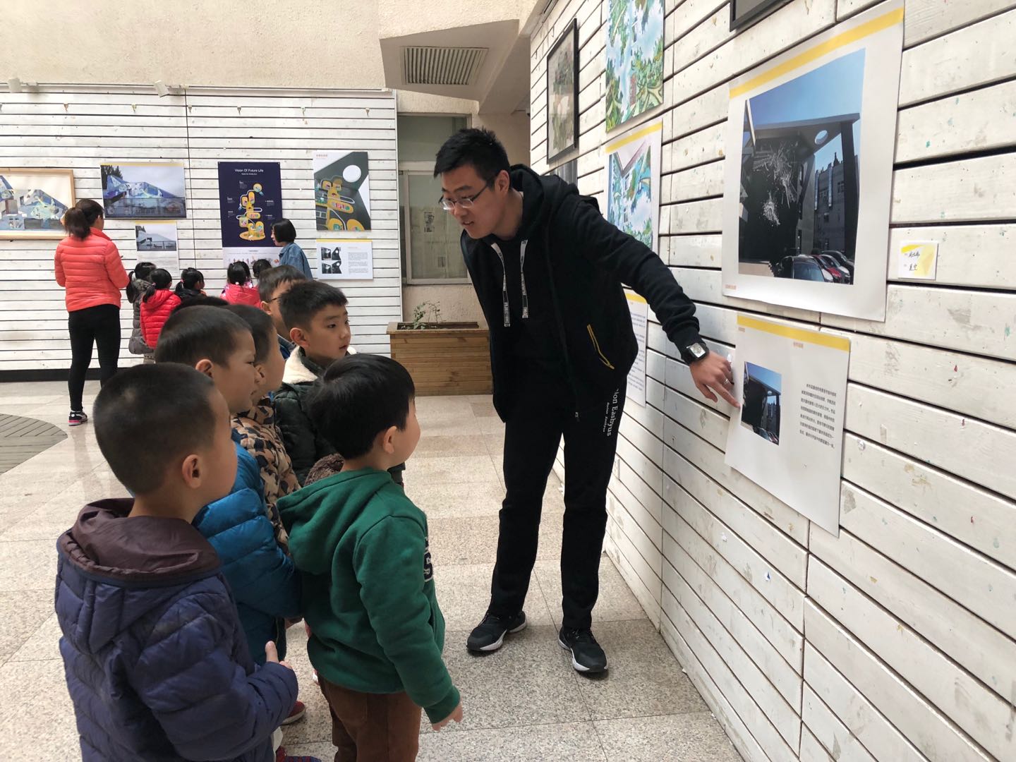 此次《装饰绘画》课程汇报展,主要展示的为发现北航校园内的小角落,为北航校园设计壁画用以装饰。研究社志愿者们为孩子们细致讲解每一幅画中的内容,并找到校园的场景"你们知道这是哪里么?"幼儿纷纷感概"原来是这里,我们也可以这样装饰我们的幼儿园。"